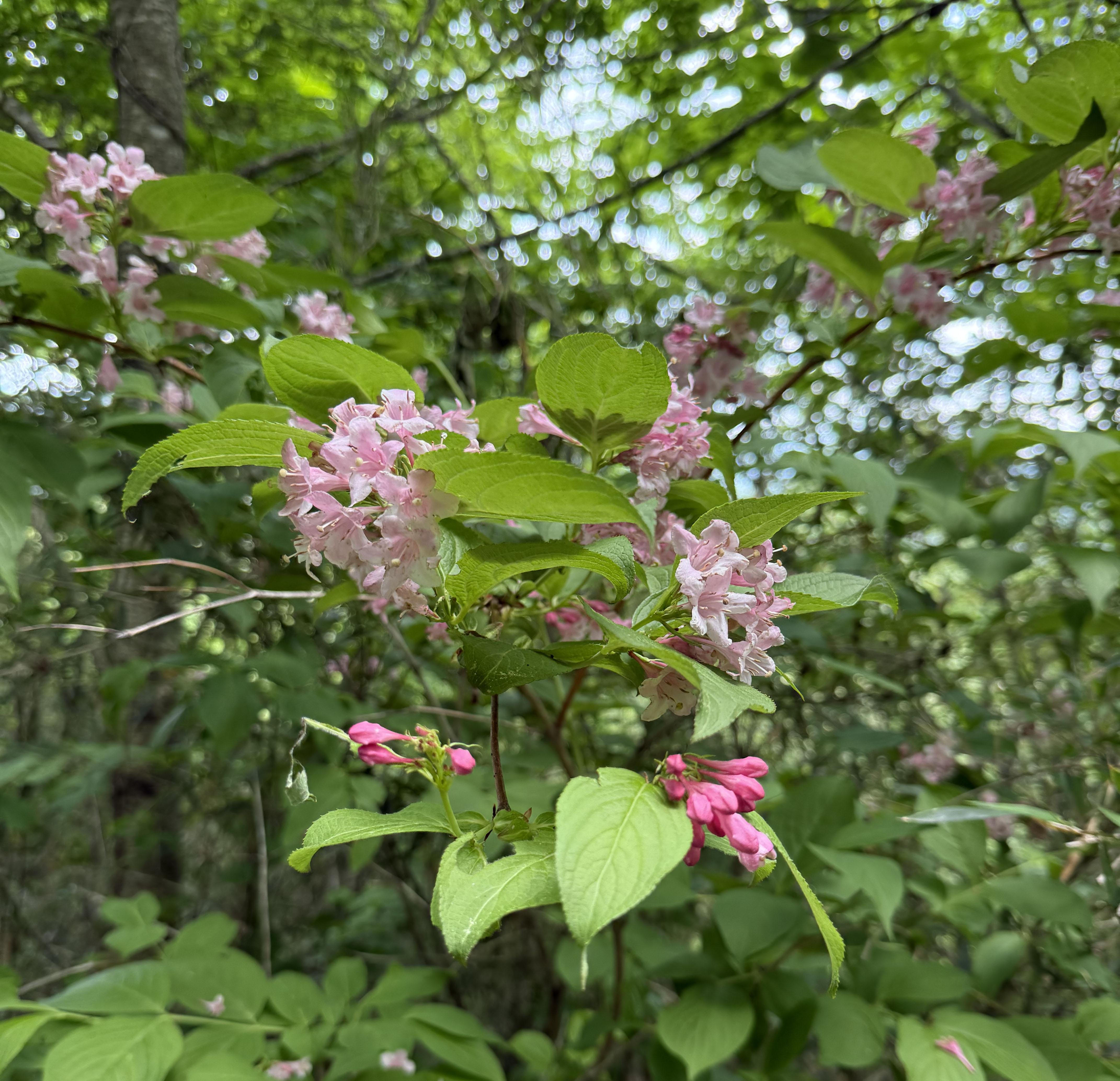 あとでAI検索したところ、87%の確率で大紅空木(オオベニウツギ)という花だそうです😊