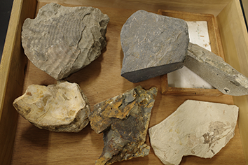 たとえば、下の写真は大きめの化石で、貝殻や木の葉など色々あります。