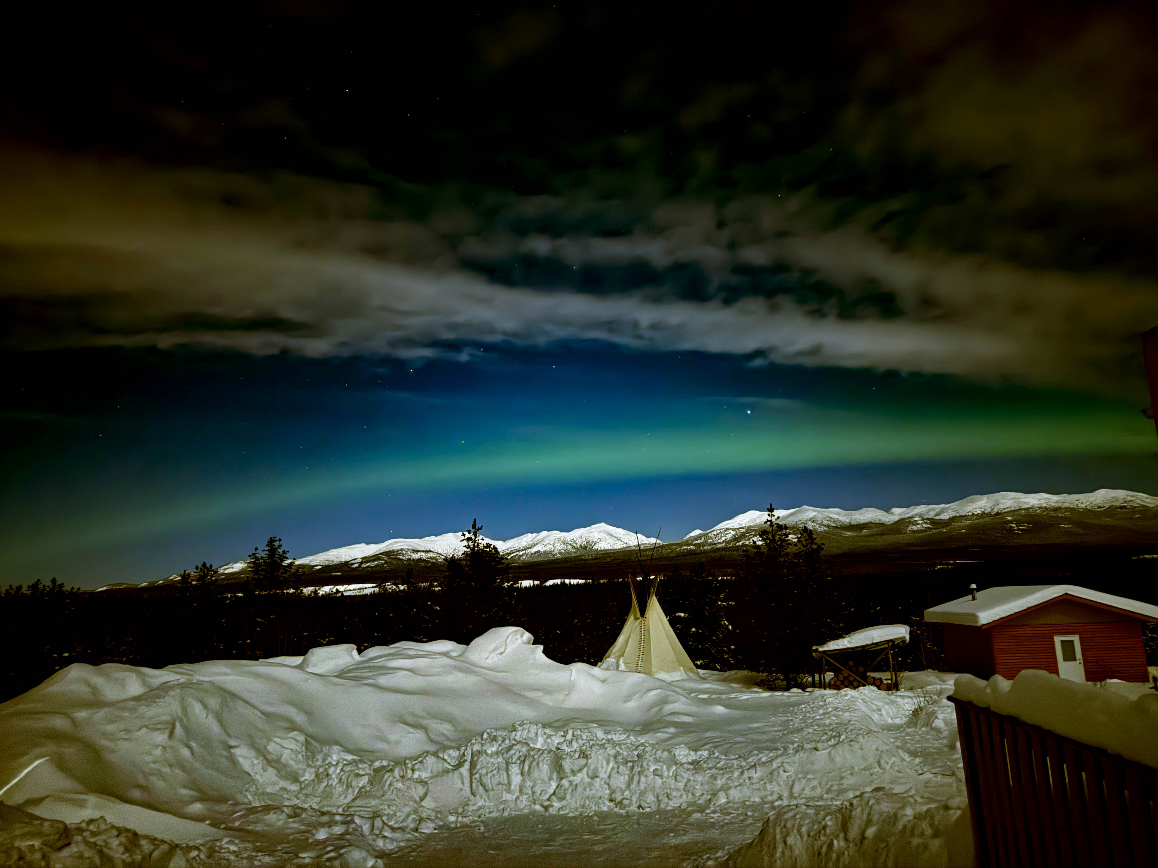 それをiPhoneやカメラを通して見ると、このように緑色のオーロラでした😇