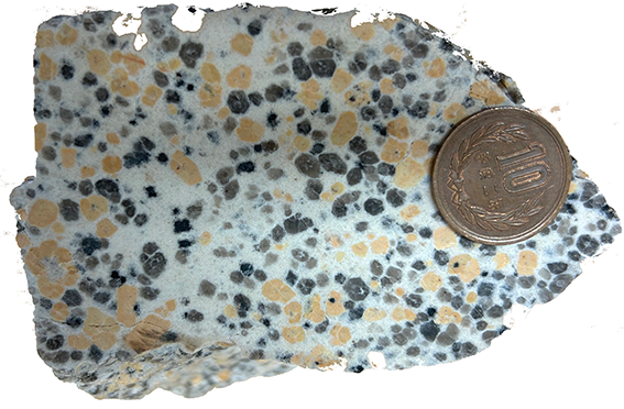 でも、この岩石を花崗岩と判定するためには、SiO2が66%以上で有色鉱物(この岩石では黒雲母)の体積比が20%以下であることを確認する必要があります🤨